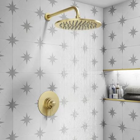 The minimalist Arezzo brushed brass thermostatic shower valve with round backplate offers thermostatic showering with two easy to operate controls, one operates flow control whilst the other allows temperature selection. To be used with a fixed head or slide rail kit, this valve has the added safety benefit of a built in anti-scald device should the cold water supply fail. The Arezzo dual concealed thermostatic shower valve adds a touch of sophistication and style in any bathroom.