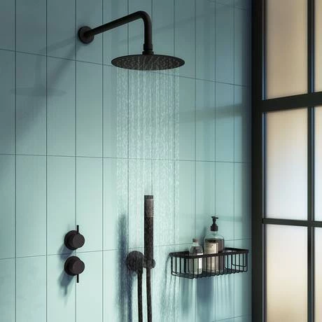 Time to update your bathroom or en suite? Install the Arezzo Matt Black Thermostatic Shower Valve Pack to transform your space instantly. This modern concealed shower valve features a minimalist round design with two circular levers to manage water temperature and flow. The two outlet shower valve is made from robust brass to resist wear and tear while a contemporary matt black finish gives a striking look to the handles and matching backplates. Easily divert water between two outlets, such as a fixed shower head and body jets, for a versatile bathing experience.