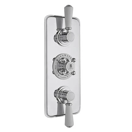 The Bayswater White Triple Concealed Thermostatic Shower Valve combines the elegance of traditional styling with the precision and technology of modern day design. Manufactured from solid brass and beautifully finished in chrome to the highest quality. The shower valve can be used on all types of water systems and offers full thermal protection to prevent scalding in the event of hot or cold water shut off.