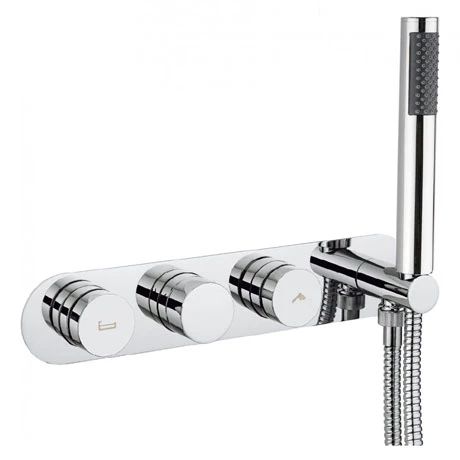 The chic looking Dial Central 2 Control Bath Valve with Single Mode Handset features a brass body which has been engineered for maximum flow rate, the valve has 11 separate flow positions for complete showering flexibility whilst the built in thermostatic valve gives precise control of the temperature.