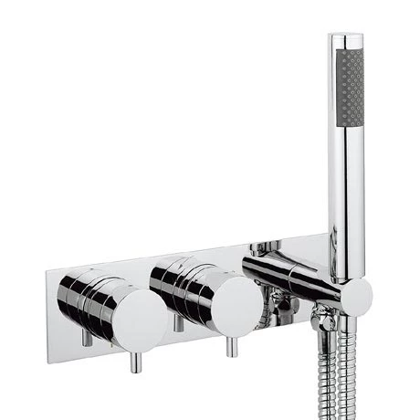 This luxurious Kai Lever Thermostatic Shower Valve with Handset features fully integrated two outlet valves that can be smartly operated for bath filling with a handset, or double showering with an overhead shower and handset.Â