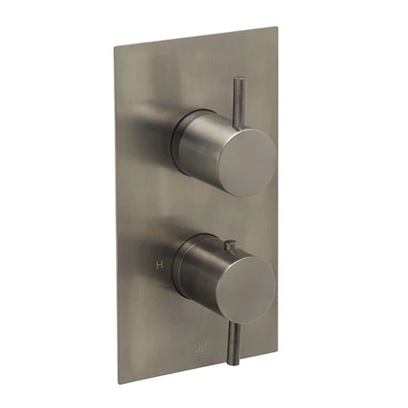 Make a real style statement with the Vos Brushed Black range from JTP. This shower valve will add sophistication and style with its sleek, smooth contours and PVD brushed black finish. Controls a single outlet such as a fixed shower head or handset and features separate controls for flow and temperature that makes it easy to use. The thermostatic valve ensures safe showering and constant temperature.