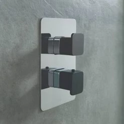 JTP Axel Twin Outlet Thermostatic Concealed Shower Valve with Matt Black Handles