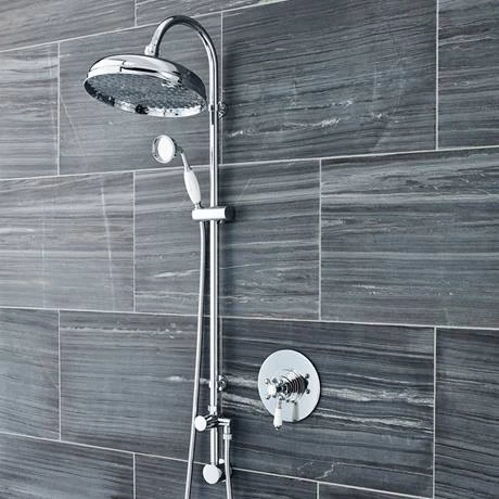 The timeless elegance of Victorian complements the modern luxury of multi-function showering. Suitable for all types of plumbing installation this dual concealed valve has the added safety benefit of a built in anti scald device should the cold water supply fail. Additionally this valve has a safety button stop for safe showering which requires a conscious decision to override to higher temperatures.