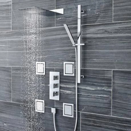 The Volt Concealed Thermostatic Triple Shower Valve with Diverter from Ultra – Volt shower valve provides the ultimate in minimalist design with its contemporary handle design, offers a flexible shower solution with a neat finish and is suitable for use with all water systems. Pipework is concealed for a clean look.